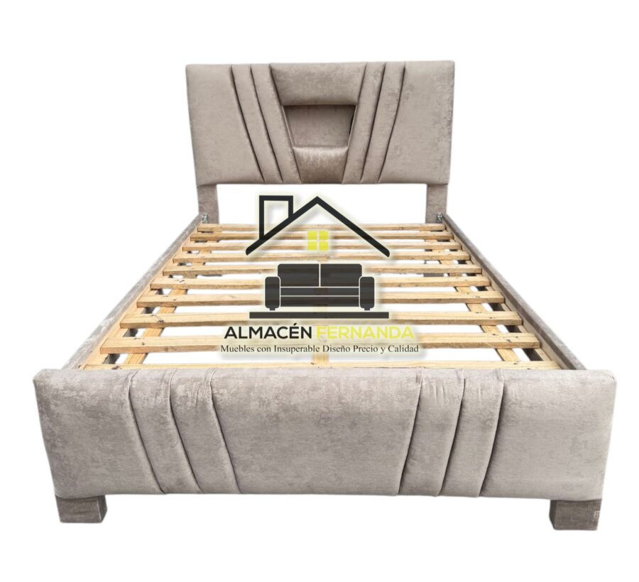 Además, es una cama doble con acabados modernos tapizados en tela suave y de fácil mantenimiento, perfecta para habitaciones matrimoniales o de estilo contemporáneo.